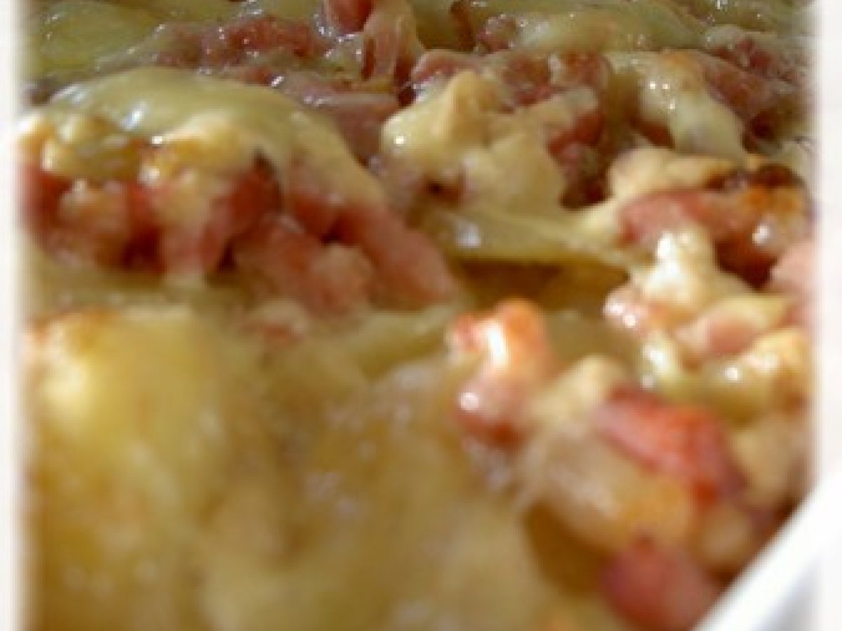 - Couper le munster en lanières de 0.5 cm et les aligner sur le plat à gratin