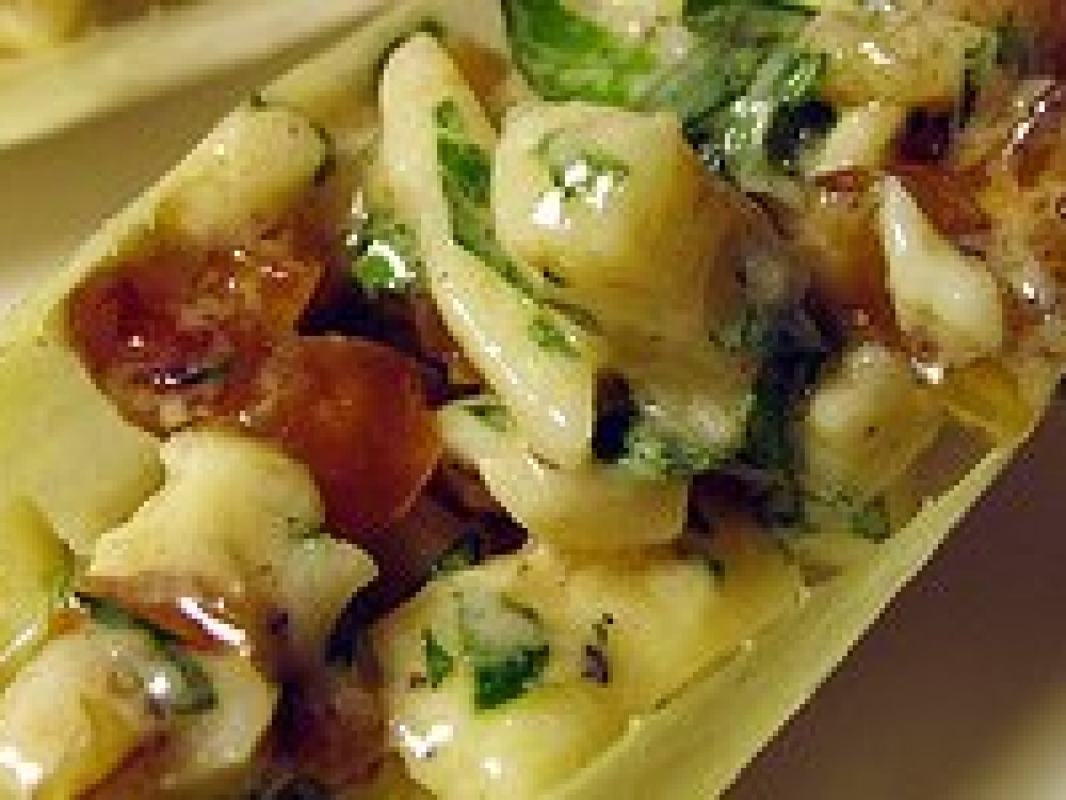 Navettes d'endives parmesan pécan Entréefacile15 min1397 Kcal Envoyer cette recette à un ami Imprimer cette page Poser une question à l'auteur Publier votre photo de cette recette Ingrédients 2 1 petite gousse d'ail 1/2 cuillère à café de sel 1 cuillère à soupe de mayonnaise 2 cuillères à soupe de jus de citron frais 2 cuillères à soupe d'huile d'olive 125 g de parmesan 1/2 tasse de céleri haché 4 endives 1 tasse de noix de pécan, grillées et hachées 1/4 tasse de persil frais, haché finement Coût estimé: 12.74Euros€ (6.37€/part)