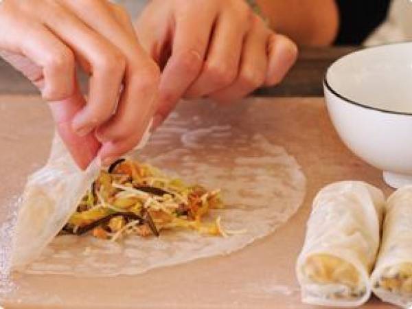 Il vous suffira de bien préparer votre garniture, de la déposer sur vos feuilles de riz et de faire cuire le tout !