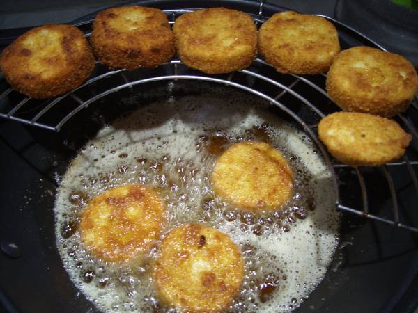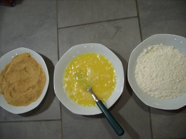 Pour la panure ; préparer trois assiettes creuses; l'une contenant la farine, l'autre les oeufs battus avec l'huile et le sel et la dernière contenant la chapelure et le cumin. Rouler les nuggets dans la farine, puis dans les oeufs puis dans la chapelure.