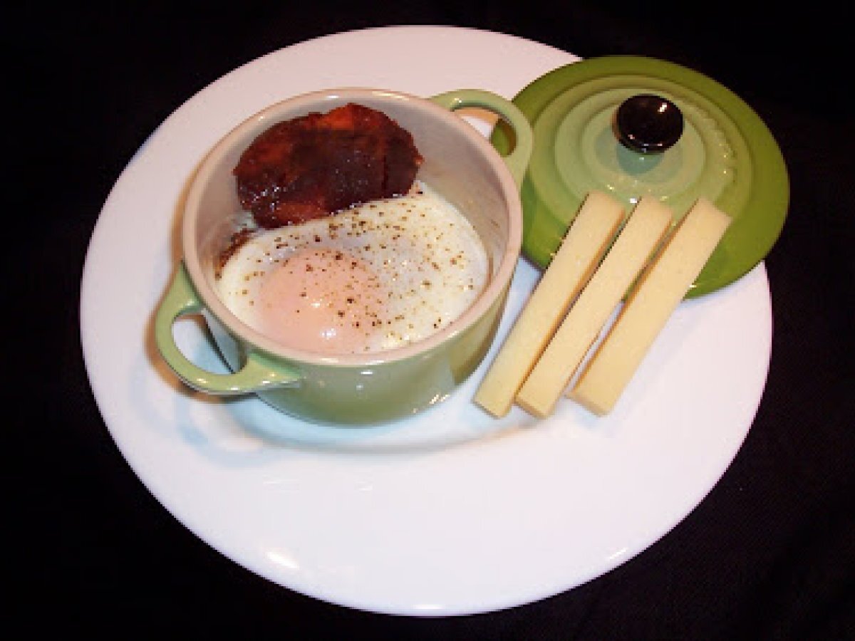 Oeuf cocotte au chorizo, tomates séchées et mouillettes de fromage etivaz votez maintenant Entréefacile20 min Envoyer cette recette à un ami Imprimer cette page Poser une question à l'auteur Publier votre photo de cette recette Ingrédients 1 1 oeuf 4 mouillettes d'Etivaz de la fromagerie Xavier 2 tranches de chorizo Bellota de la Maison du Pata Negra 1 pétale de tomates séchées de Quai délices coupées en petits morceaux 1 cuillère à café de crème légère liquide Poivre