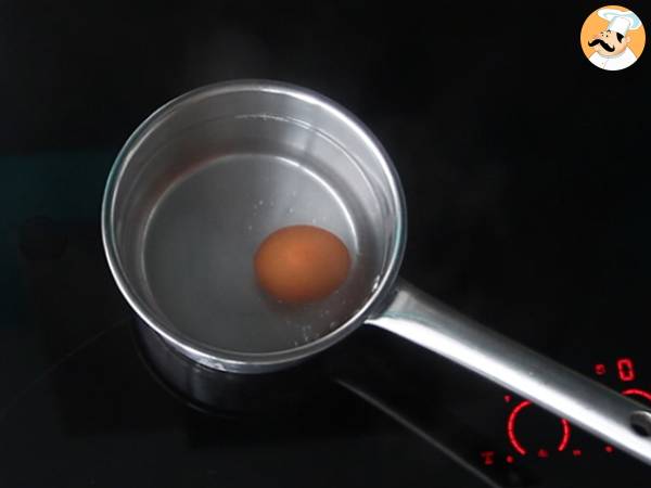 Faire bouillir de l'eau dans une casserole. Ajouter l’œuf et le laisser cuire 3 minutes.