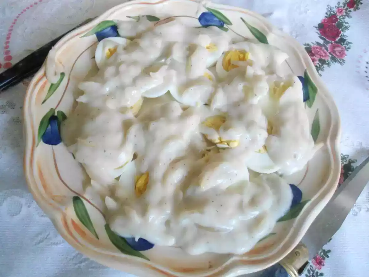 2 oignons+6 œufs durs=4 convives ravis de déguster les œufs à la tripe!!!