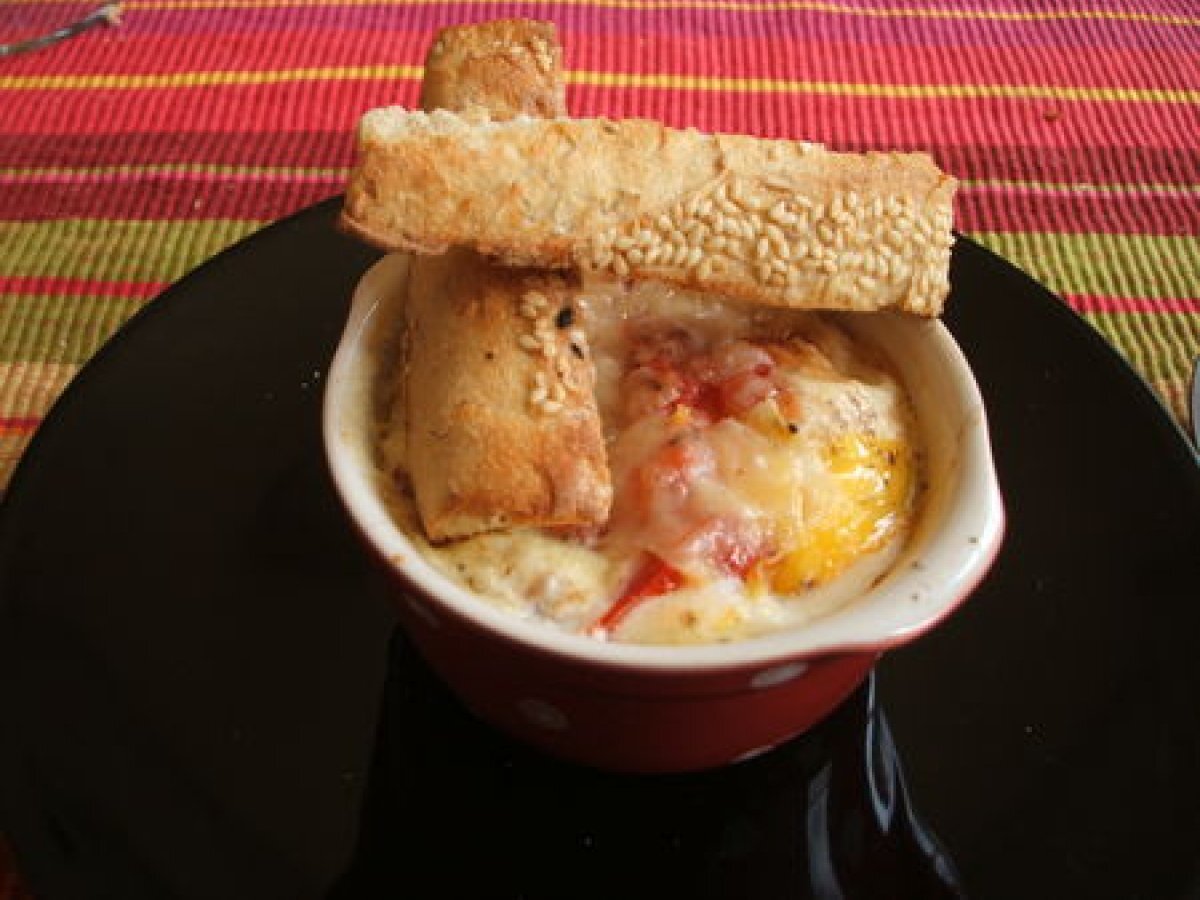 Oeufs-cocotte coppa, tomate et parmesan Entréefacile25 min648 Kcal Envoyer cette recette à un ami Imprimer cette page Poser une question à l'auteur Publier votre photo de cette recette Ingrédients 2 2 oeufs 2 cuillères à soupe de crème fraîche 2 tranches de coppa coupées en morceaux 1 tomate coupée en dés 10 copeaux de parmesan ( s'aider d'un économe) Coût estimé: 6.88Euros€ (3.44€/part)
