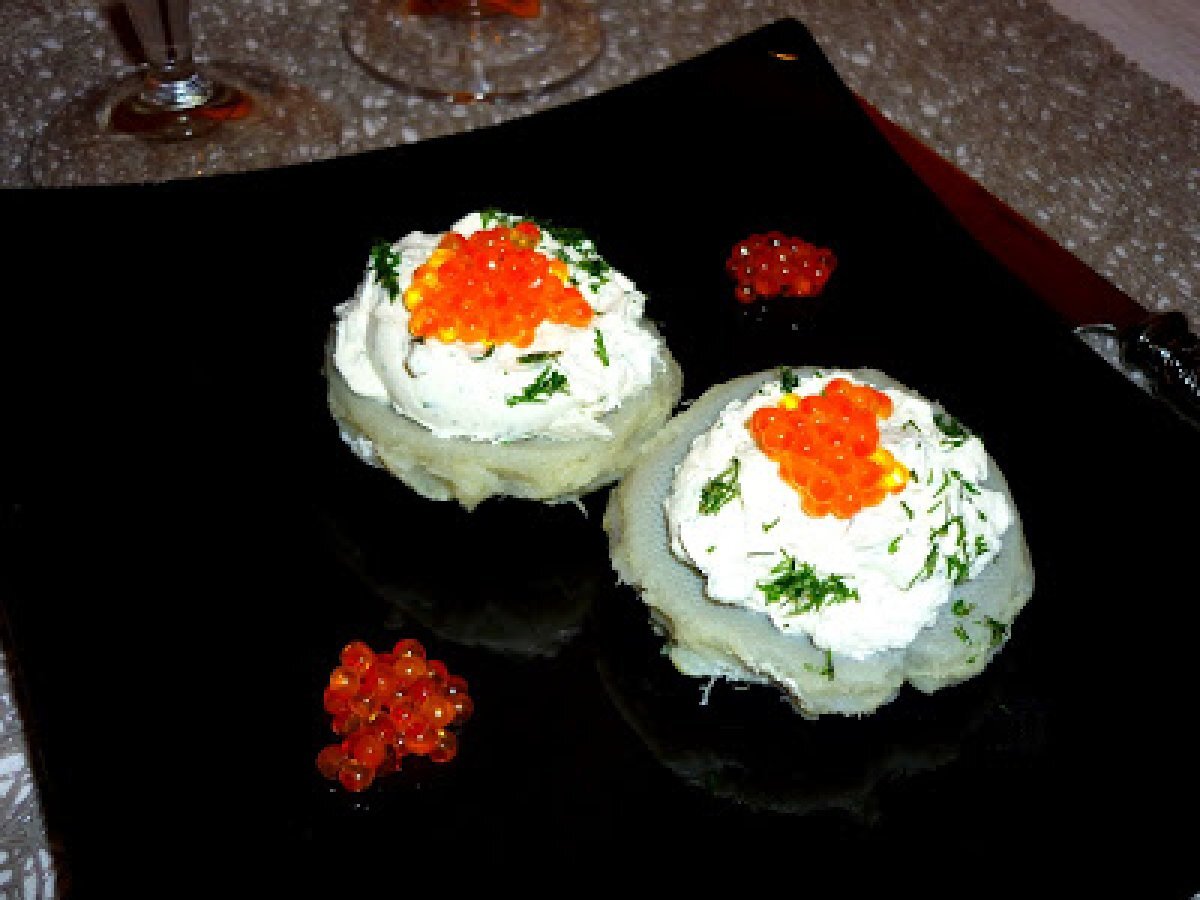 Oeufs de saumon en coque d'artichaut