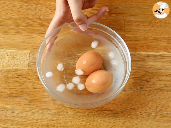 Sortir les œufs immédiatement et les plonger dans de l'eau glacée pendant 1 minute environ pour stopper la cuisson.