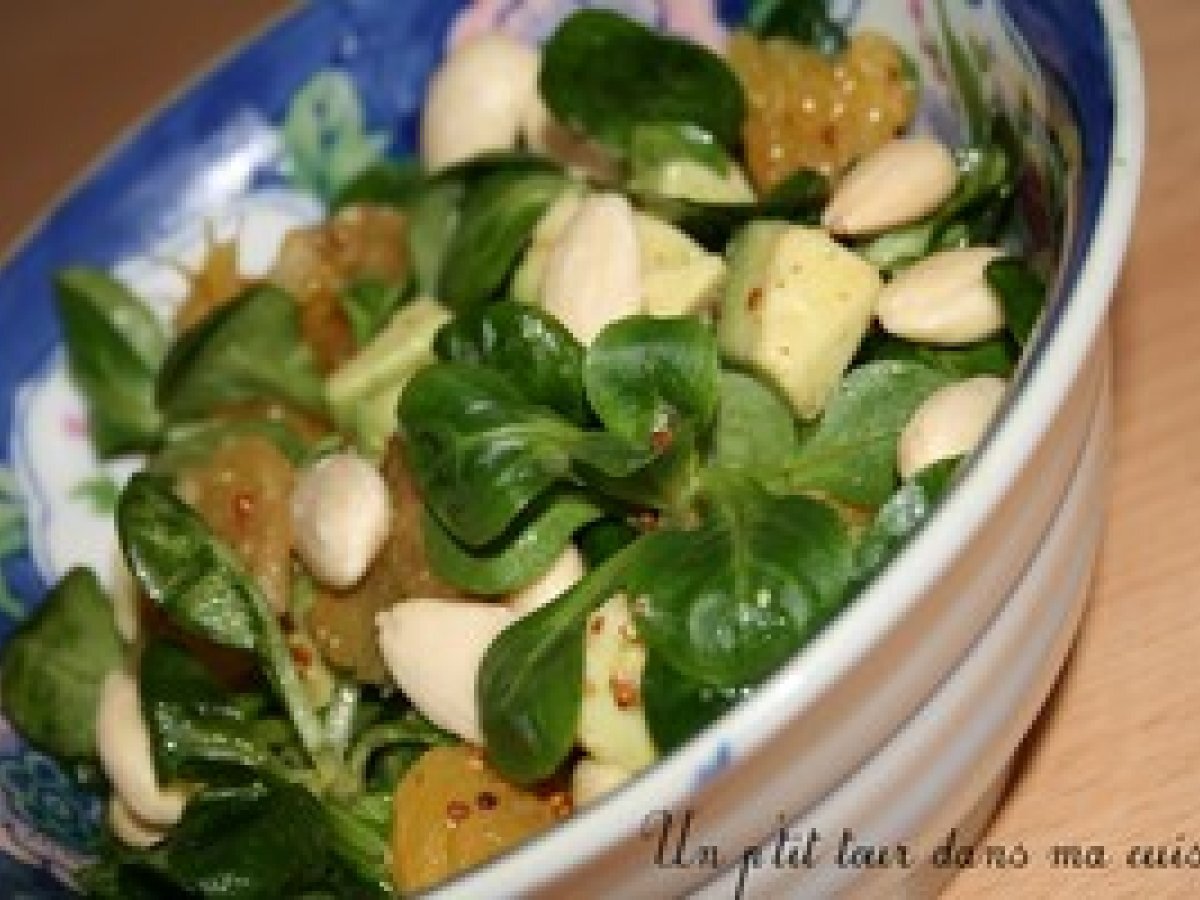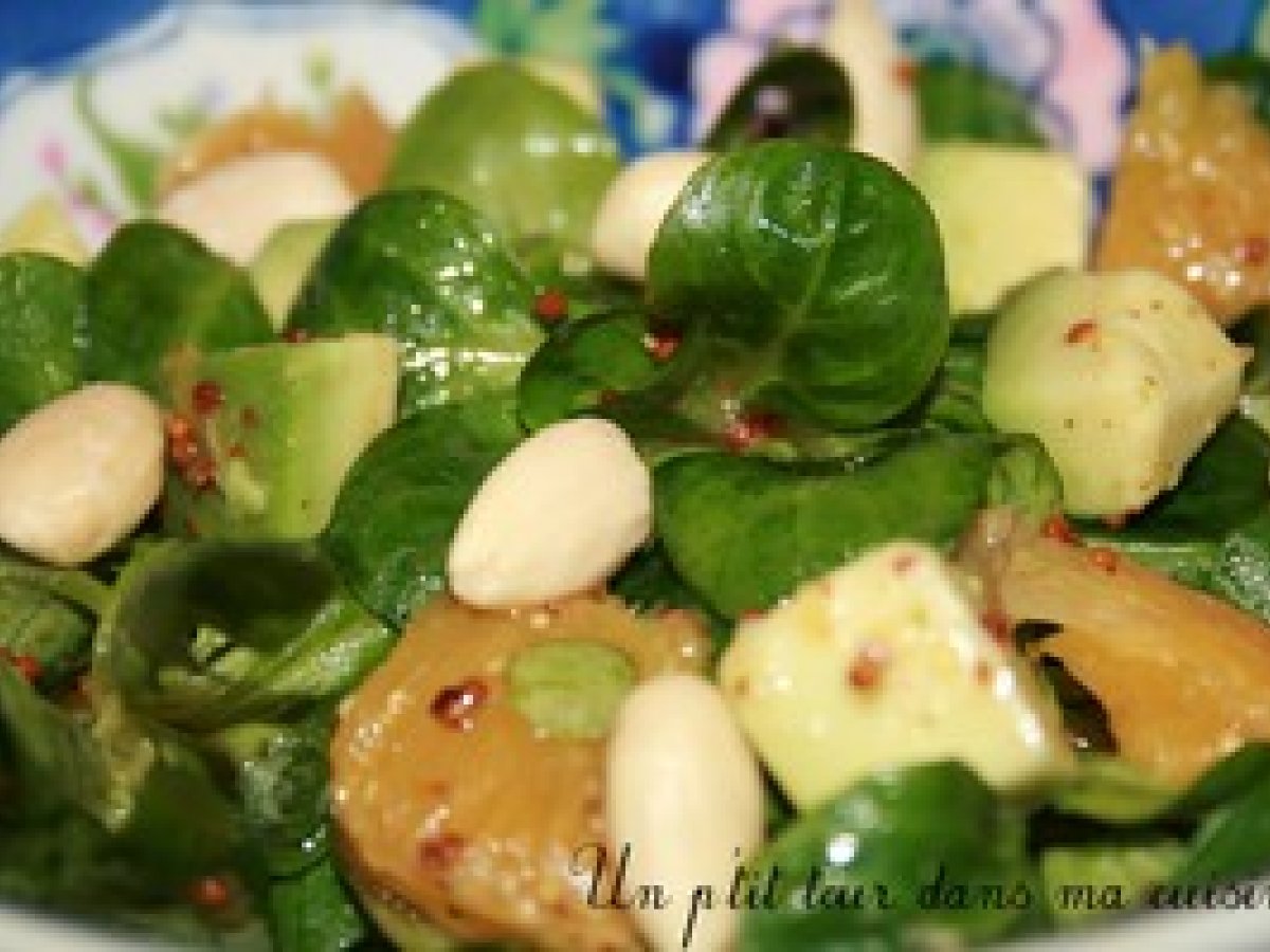 Un peu de légèreté après l'avalanche de bûches, chocolats et autres galettes des rois. C'est une petite salade simple à réaliser, ainsi les amandes apportent une petite touche de croquant.