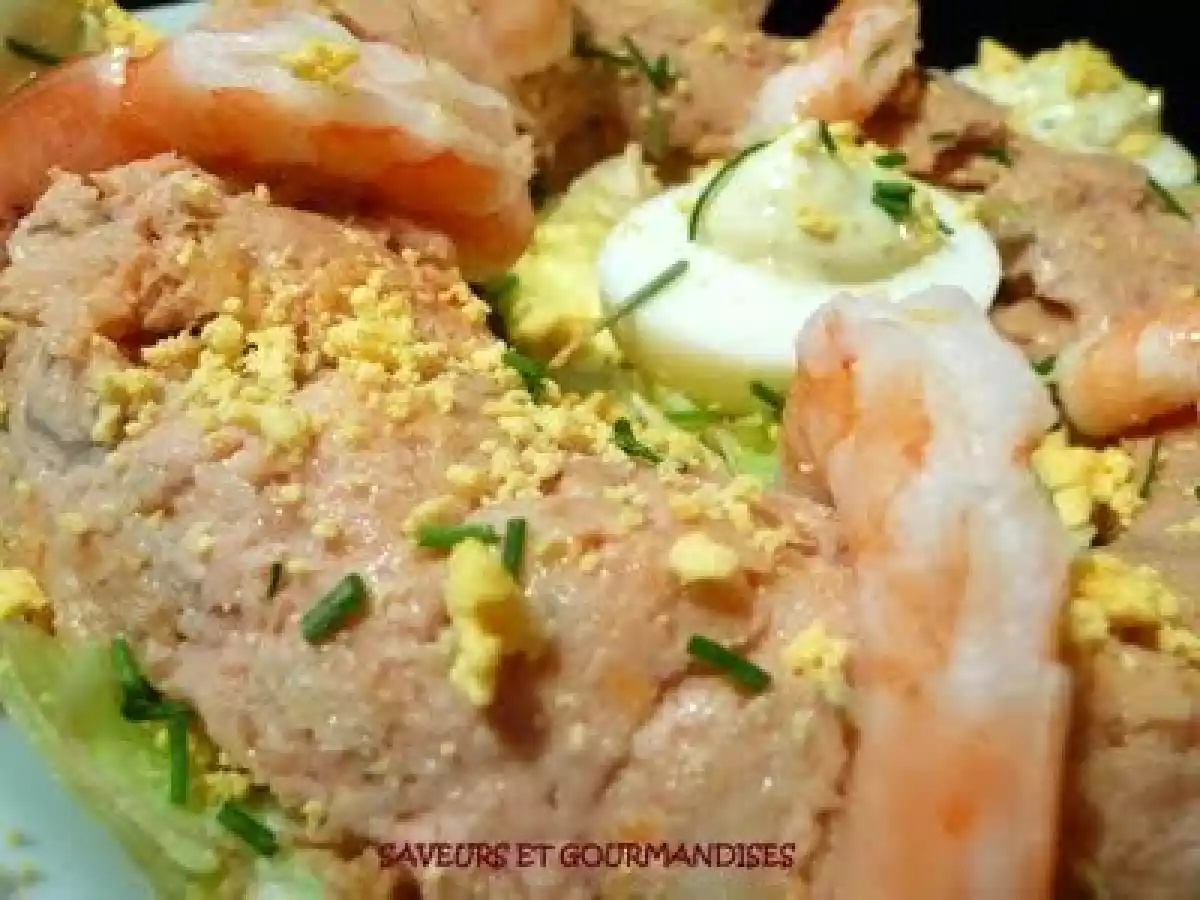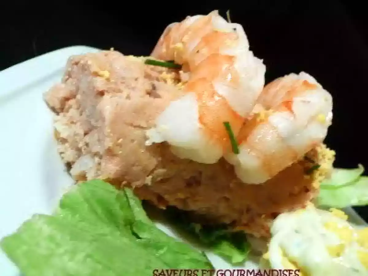 Pain de lotte et crevettes. PrécédentSuivant Entréefacile1 h 55 m Envoyer cette recette à un ami Imprimer cette page Poser une question à l'auteur Publier votre photo de cette recette Ingrédients 7 1 moule à savarin de 22 cm. 1 kg de lotte 4 oeufs 50 ml de concentré de tomates Sel Poivre Muscade. Court-bouillon : 2 litres d'eau 1 carotte 1 oignon 1 bouquet garni (queues de persil, thym, laurier) 100 ml de vinaigre (ou 200 ml de vin blanc) Quelques grains de poivre.