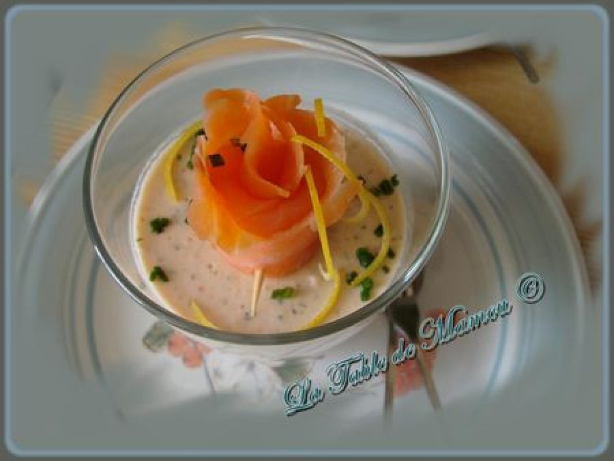 Panna cotta au saumon fumé votez maintenant Entréefacile12 min Envoyer cette recette à un ami Imprimer cette page Poser une question à l'auteur Publier votre photo de cette recette Ingrédients 2 200 g de saumon fumé + 4 tranches pour la décoration 1 citron bio Ciboulette persil basilic 2 g d'agar-agar 40 cl de crème liquide Piment d' Espelette 2 cuillères à café de raifort