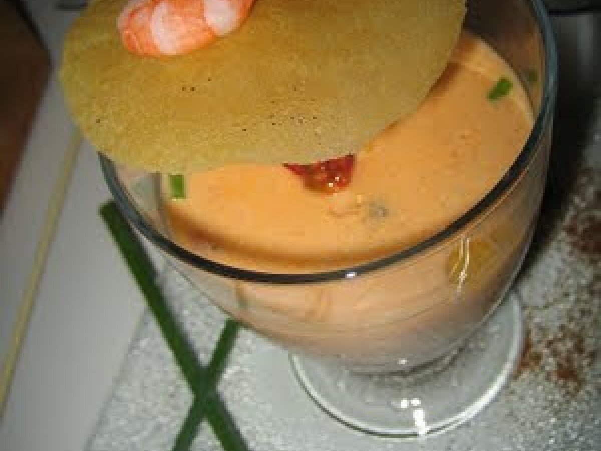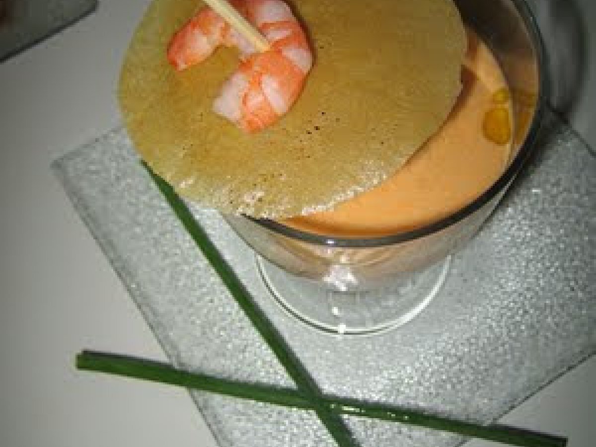Panna cotta de bisque de homard et crevettes grises de ma mer du nord!!! PrécédentSuivant Entréefacile30 min420 Kcal Envoyer cette recette à un ami Imprimer cette page Poser une question à l'auteur Publier votre photo de cette recette Ingrédients 2 20 cl de bisque de homard 5 cl de crème liquide entière 1 feuille de gélatine 3 tomates 100 g de crevettes grises de la Mer du Nord 1 cuillère à soupe d'huile d'olive 1 cuillère à soupe de ciboulette hachée 2 tomates cerises 1 feuille de brick 20 g de beurre sel et poivre du moulin