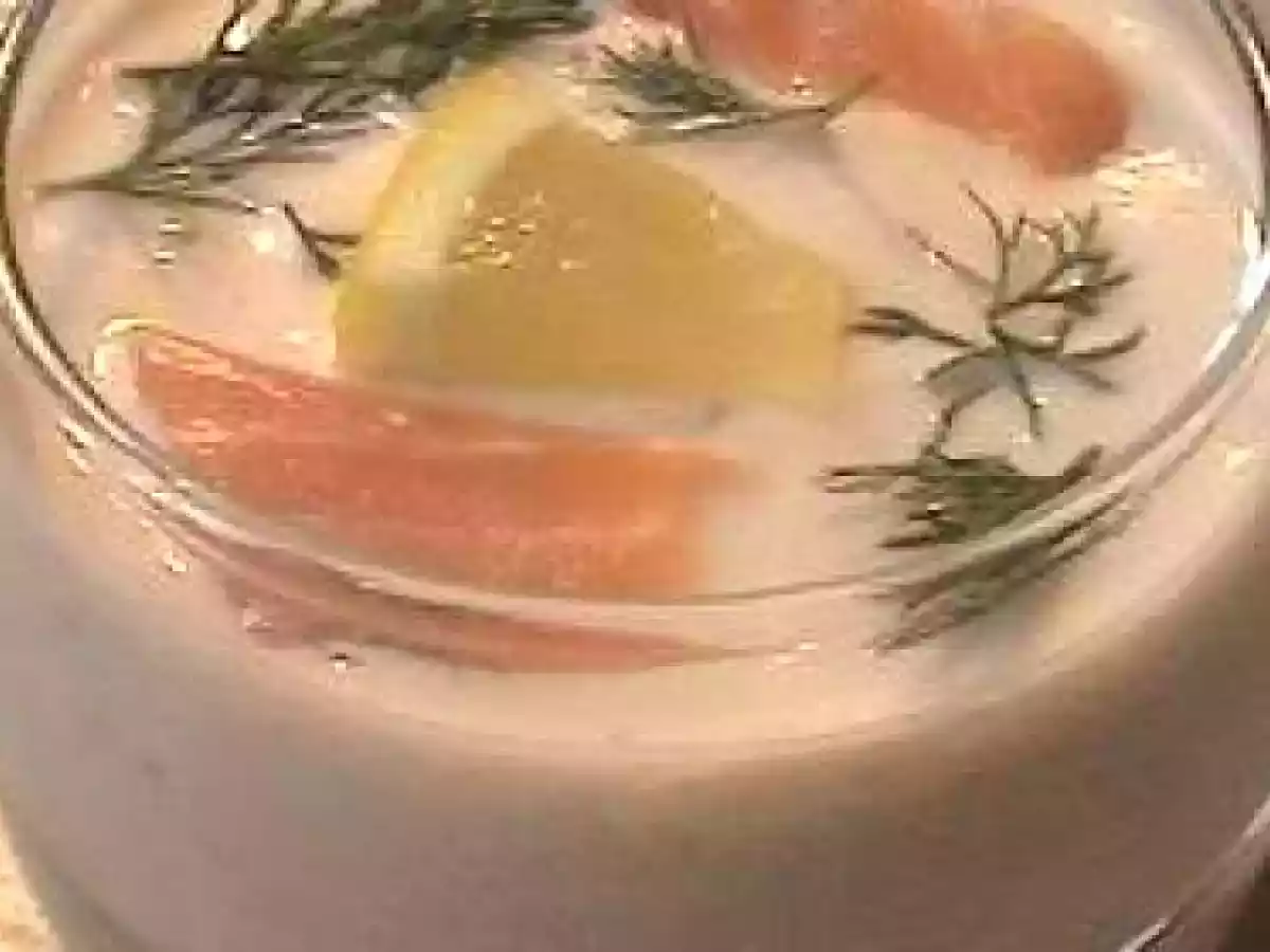 Panna cotta saumon fumé citroné et aneth PrécédentSuivant Entréemoyen10 min Envoyer cette recette à un ami Imprimer cette page Poser une question à l'auteur Publier votre photo de cette recette Ingrédients 2 60 g de saumon fumé 15 cl de crème liquide 1 cuil à soupe d'aneth 2 feuilles de gélatine le jus d'un demi citron