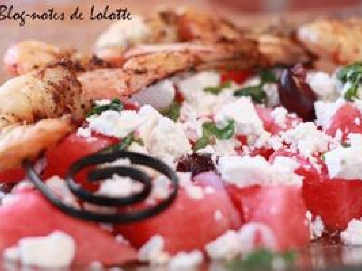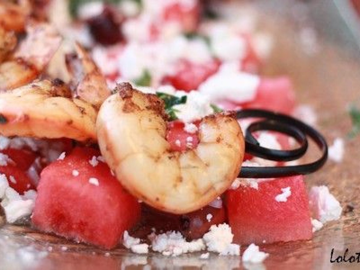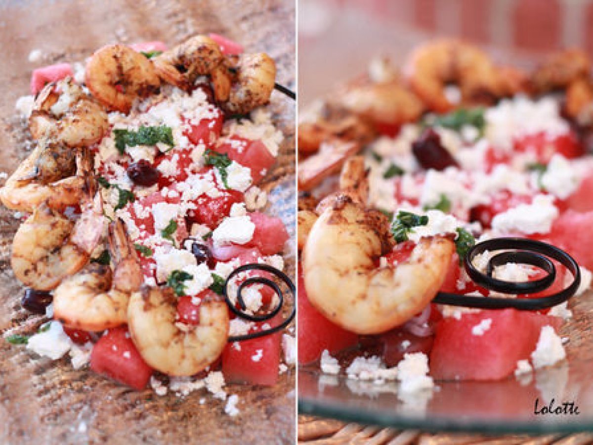 Pastèque, féta, gambas épicées : fraîcheur! et prolongation de tu prends l'apéro?