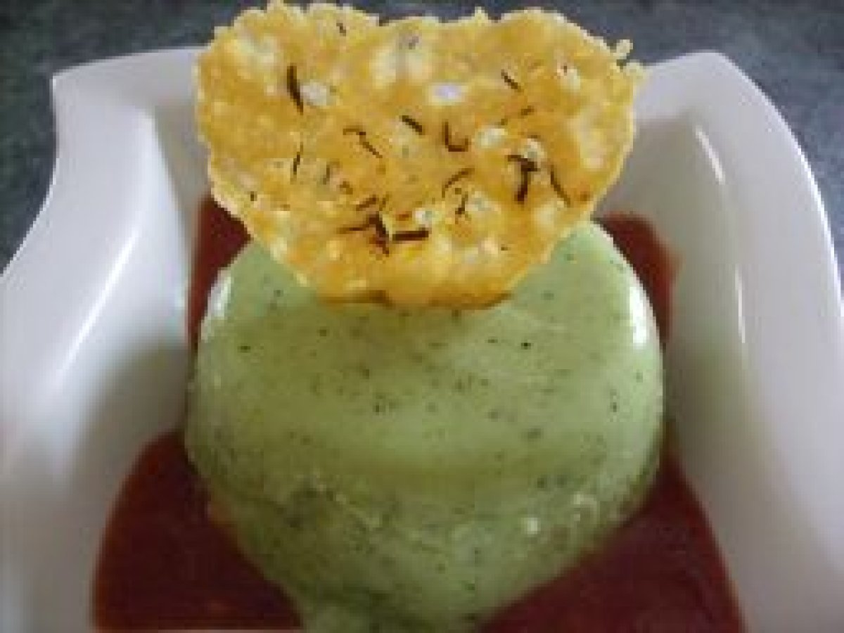 Petit flan courgette et chèvre à l 'agar agar et sa tuile de parmesan