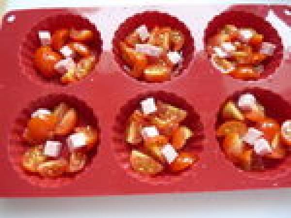Petite quiche aux tomates cerise ww PrécédentSuivant Entréefacile25 min176 Kcal Envoyer cette recette à un ami Imprimer cette page Poser une question à l'auteur Publier votre photo de cette recette Ingrédients 3 Pour 6 petites quiches : 12 tomates cerise 50 g de dés de jambon 1 oeuf 40 g de farine 25 cl lait 1 cuillère à café de moutarde 30 g fromage râpé 1 cuillère à soupe basilic Sel poivre Coût estimé: 2.44Euros€ (0.81€/part)
