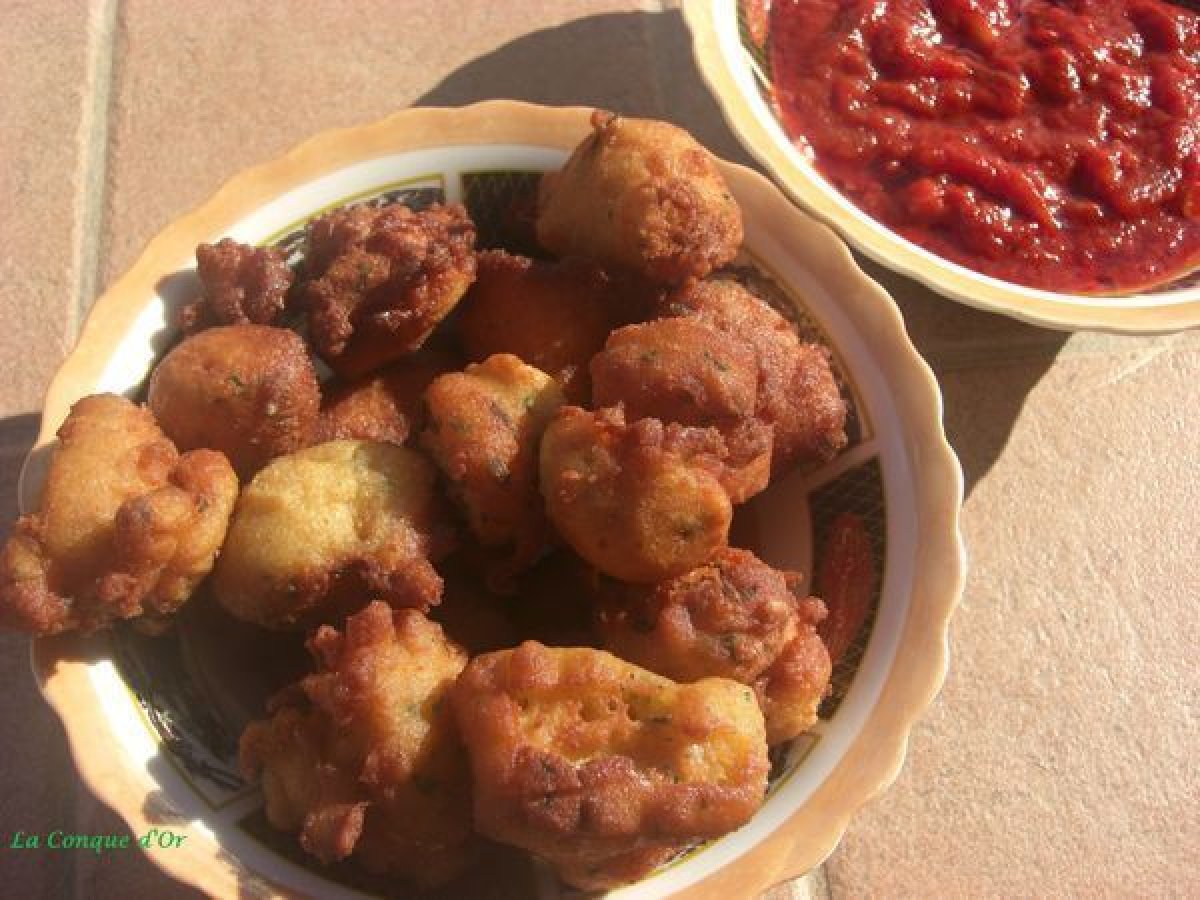 Petits beignets de pain à tremper dans une sauce tomate un peu épicée...