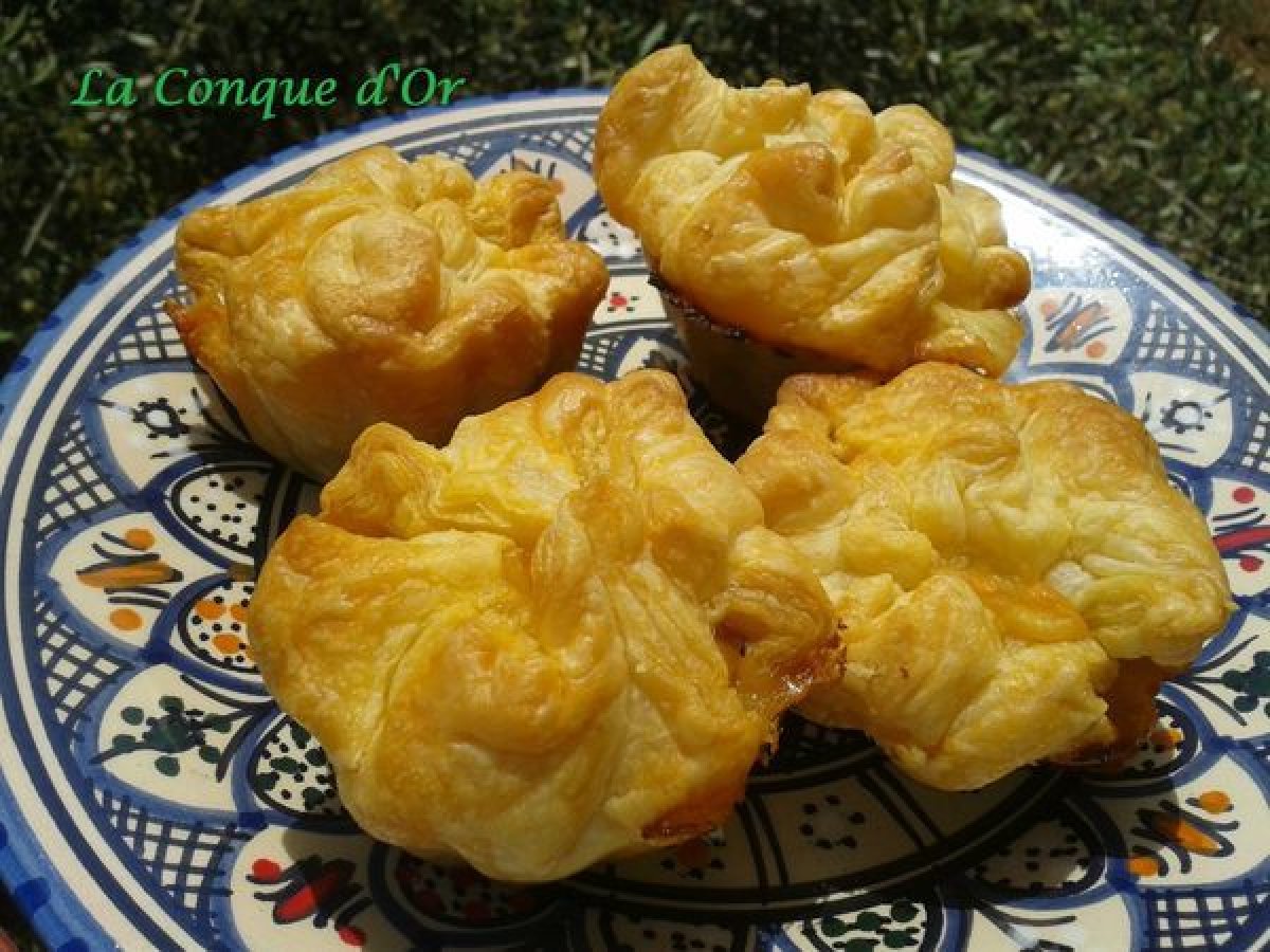 Des cake à pâte feuilletée garnies de courgettes, poivrons et tomates...