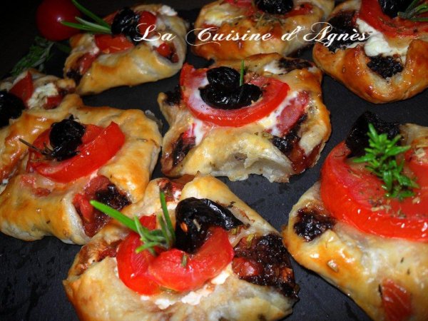 Voilà des petits feuilletés qui sentent bon le sud, avec ses herbes (la farigoulette ), ses olives….à déguster à l apéro avec un bon petit rosé (Patrimonio Corse par exemple , un Estandon, un Bandol…vous n avez que l embarras du choix!)..ou en entrée ou plat principal (il suffit de faire des carrés de 12 cm) accompagnés d’un bon mesclun….c’est simple et bon ..idéal à l’approche de l’été …