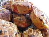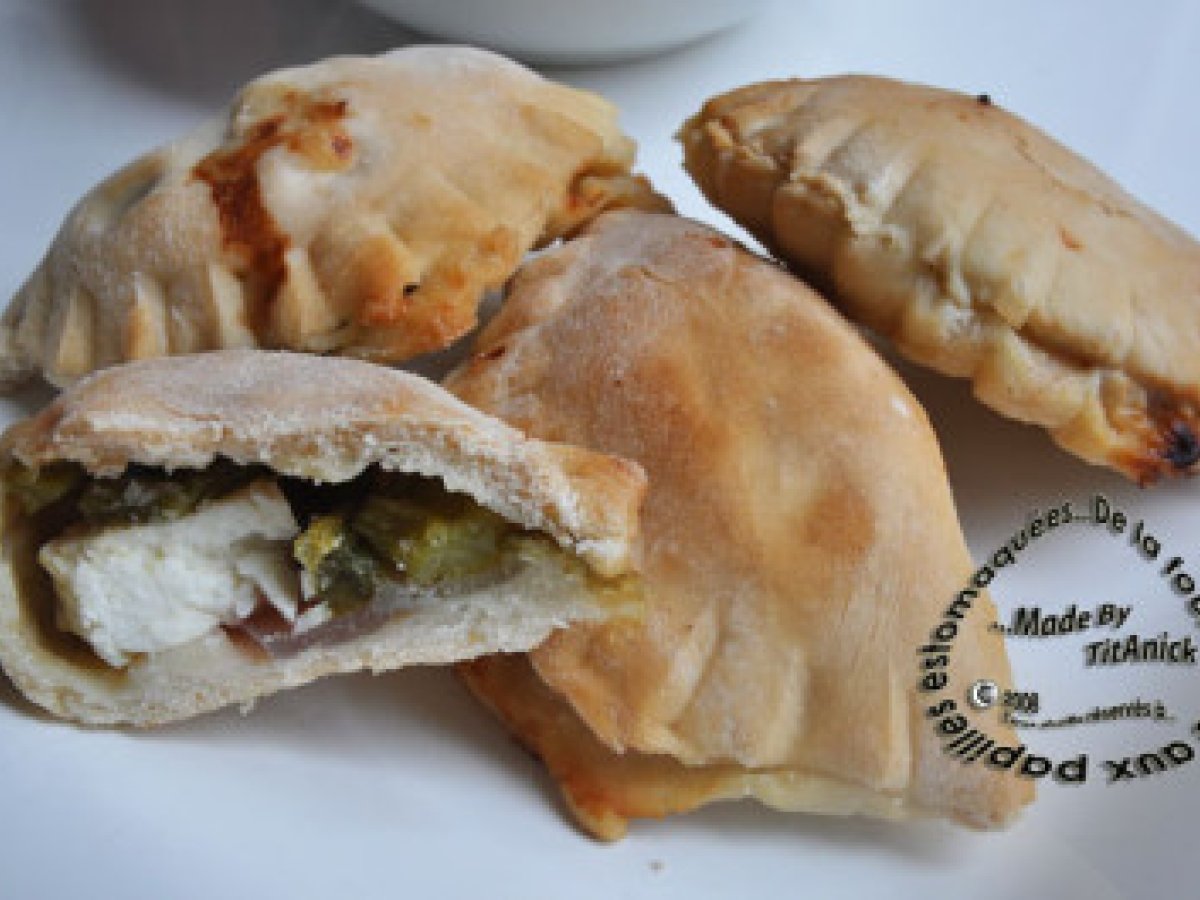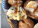 Petits pains fourrés aux oignons, poivrons, fêta et olives noires