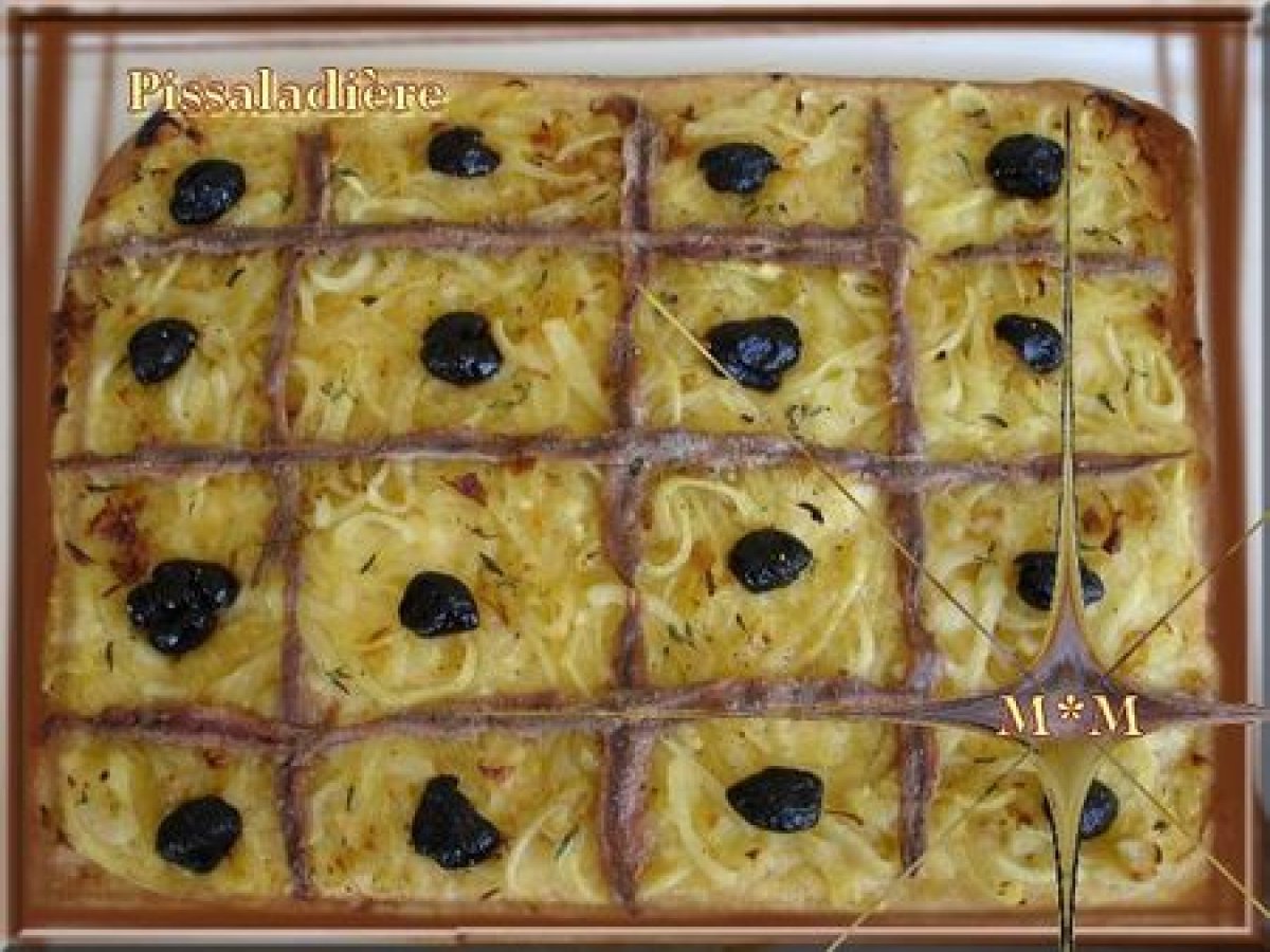 En voilà une recette de pissaladière !!!!!!!!! Il n'y a jamais de béchamel dans une pissaladière qu'elle soit niçoise,cannoise ou d'ailleurs, seulement de la pâte à pain,de l'oignon,des anchois et des olives noires.