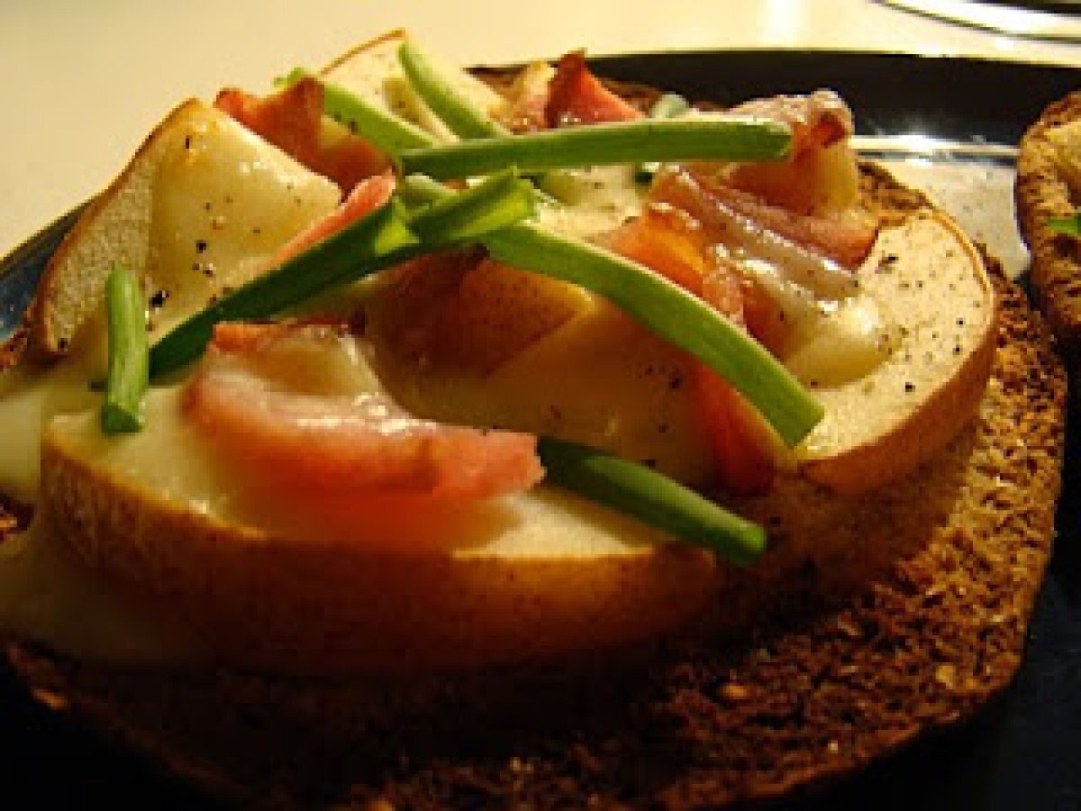 Pizzettes poires-bacon-fromage Entréefacile20 min Envoyer cette recette à un ami Imprimer cette page Poser une question à l'auteur Publier votre photo de cette recette Ingrédients 1 1 pain plat multigrains Un filet d'huile d'olive 1/2 poire pas trop mûre coupée en morceaux 1 tranche de bacon de dos 1 once de fromage Rang 2 de la fromagerie des Grondines Quelques brins de ciboulette Du poivre au goût
