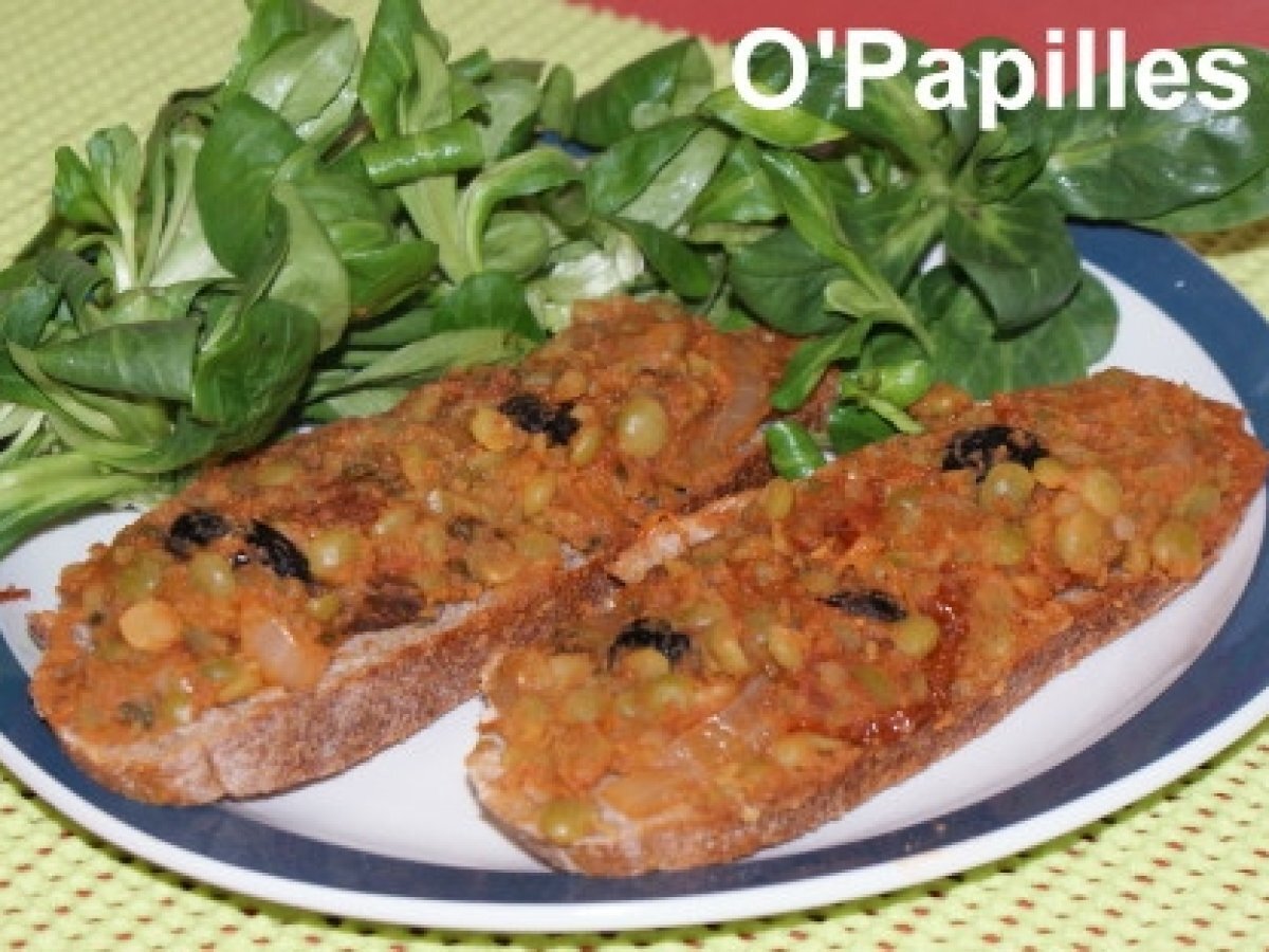 Pois cassés à la tomate votez maintenant Entréefacile25 min Envoyer cette recette à un ami Imprimer cette page Poser une question à l'auteur Publier votre photo de cette recette Ingrédients 4 250 g de pois cassés 1 oignon du concentré de tomates des tomates séchées des olives noires 1 cuillère à café de cumin 2 cuillères à soupe d'huile d'olive des tranches de pain bis sel et poivre