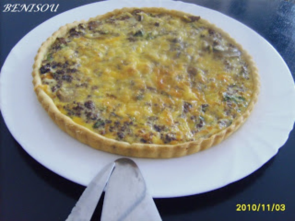 Quiche a la viande hachee PrécédentSuivant Entréemoyen1 h 5 m Envoyer cette recette à un ami Imprimer cette page Poser une question à l'auteur Publier votre photo de cette recette Ingrédients 8 500 g de farine 250 g de margarine ramollie 1/2 cuillère à café de sel 2 jaune d'oeufs. eau huile 250 g de viande hachée 1 oignon 1 gousse d ail 2 cuillères à soupe de crème fraîche 1 poignée de champignons. fromage râpé. poivre, sel, noix de muscade. 5 oeufs.