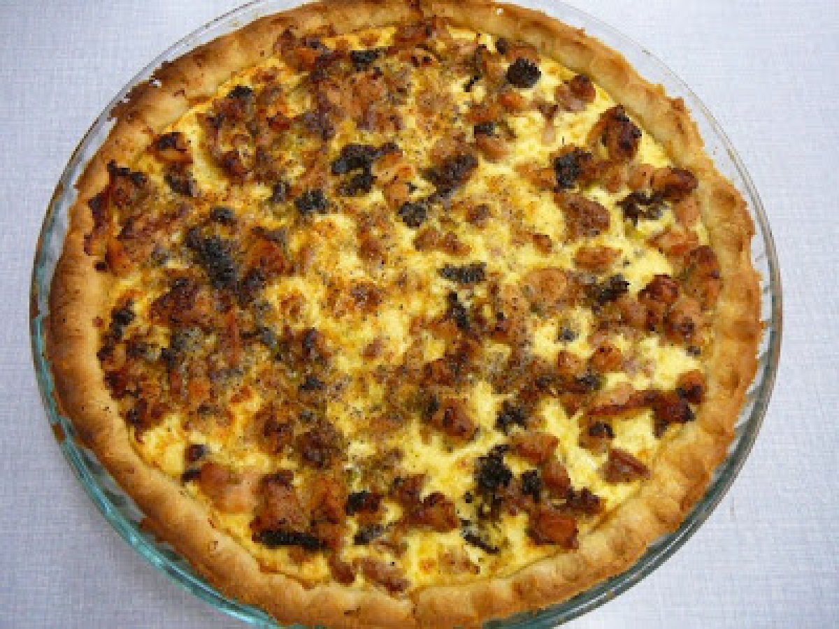 Quiche au poulet et aux morilles votez maintenant PrécédentSuivant Entréemoyen1 h 2 m Envoyer cette recette à un ami Imprimer cette page Poser une question à l'auteur Publier votre photo de cette recette Ingrédients 6 1 abaisse de pâte feuilletée 1 cuillère à soupe de beurre + 1 cuillère à café d'huile 2 cuisses de poulet, désossées et coupées en petits dés 15 g de morilles séchées, 2 grosses échalotes, émincées 3 oeufs, battus en omelette 250 ml de crème 250 ml de l'eau de trempage de morilles ou du lait ou un mélange des deux Sel et poivre du moulin 2 cuillères à soupe de chapelure