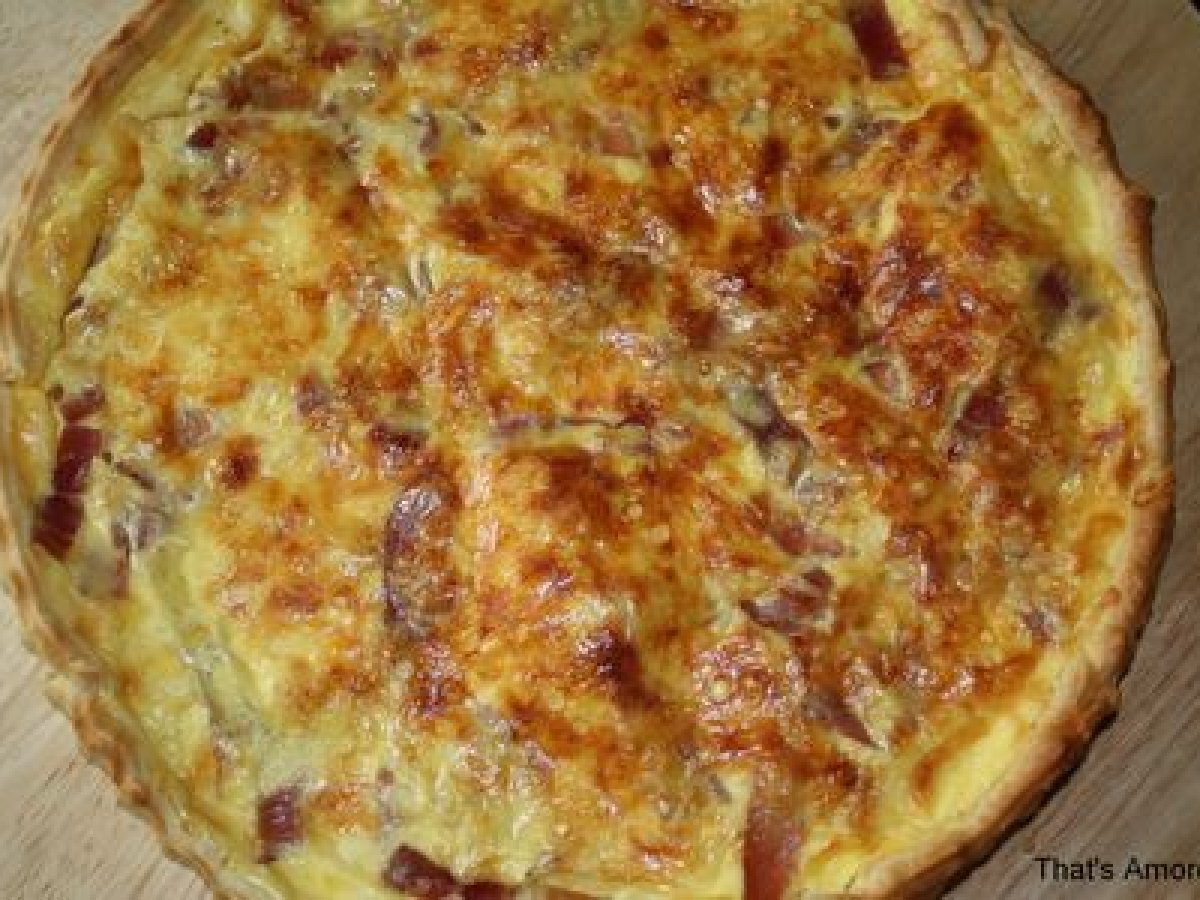 Quiche auvergnate votez maintenant PrécédentSuivant Entréefacile50 min489 Kcal Envoyer cette recette à un ami Imprimer cette page Poser une question à l'auteur Publier votre photo de cette recette Ingrédients 4 1 pâte feuilletée 70 g de cantal jeune râpé 3 fines tranches de jambon de pays 3 oeufs ½ verre de lait 3 cuillères à soupe de crème fraîche épaisse sel poivre