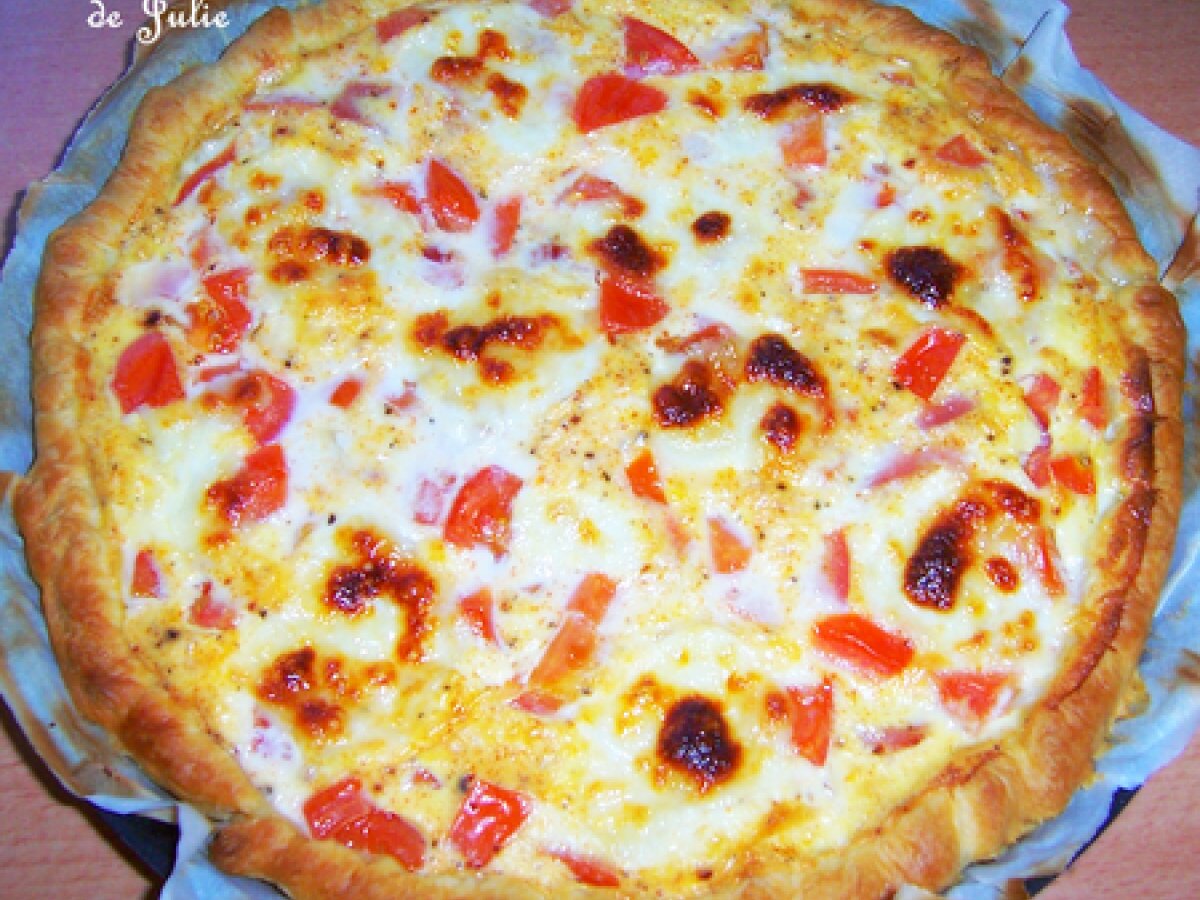 Quiche jambon / tomates / mozzarella Entréefacile1 h 5 m703 Kcal Envoyer cette recette à un ami Imprimer cette page Poser une question à l'auteur Publier votre photo de cette recette Ingrédients 3 Pour une quiche : 1 pâte feuilletée (en rouleau ou maison) 10 cl de lait 10 cl de crème liquide (à 3% de MG ) 2 oeufs 2 tranches de jambon blanc 4 petites tomates 1 boule de mozzarella sel poivre herbes de Provence Coût estimé: 5.22Euros€ (1.74€/part)