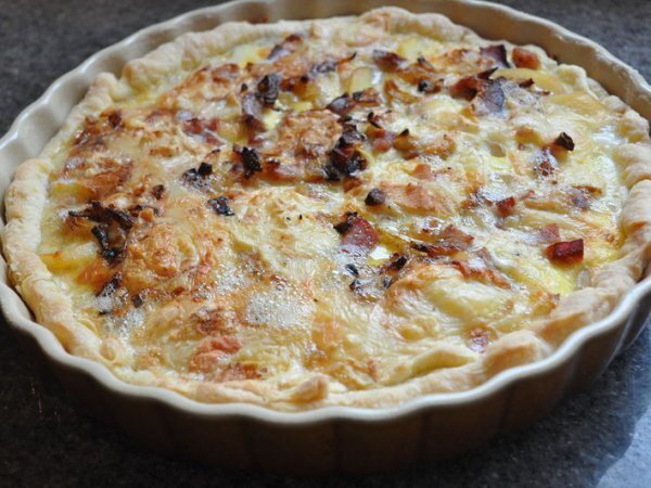 Quiche mont d'or et pommes de terre Entréefacile1 heure Envoyer cette recette à un ami Imprimer cette page Poser une question à l'auteur Publier votre photo de cette recette Ingrédients 4 1 pâte feuilletée ou une pâte brisée 500 g de pommes de terre 200 à 300 g de mont d'or 2 oeufs 100 g de lait 1 poignée de lardon 100 g de jambon blanc 1 oignon 1 gousse d'ail sel et poivre