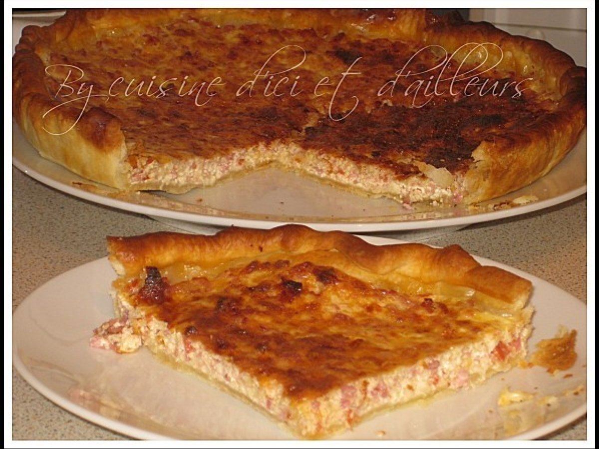 Quiche moulinée au jambon, chorizo et comté