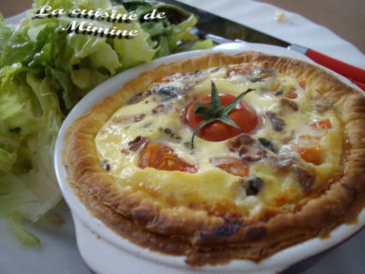Voici une quiche qui change de l'ordinaire. En plus d'être jolie avec ces petites tomates cerises, le goût du roquefort apporte une touche d'originalité et en relève le goût.