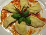 Ravioles de langoustine au bleu d'auvergne , sauce aux fruits de mer votez maintenant PrécédentSuivant Entréemoyen33 min Envoyer cette recette à un ami Imprimer cette page Poser une question à l'auteur Publier votre photo de cette recette Ingrédients 4 1/ pour la farce: 400 g de langoustines 2 cuillères à soupe de mascarpone 40 g de bleu d'Auvergne 2/ pour la pâte à raviole: 250 g de farine 1 et ½ oeufs moyens 1 cuillère à café de sel 80 g d'eau 3/ pour la sauce: 50 g d'un mélange de fruits de mer 20 cl de crème liquide allégée 1 cube ail et crème de Knorr