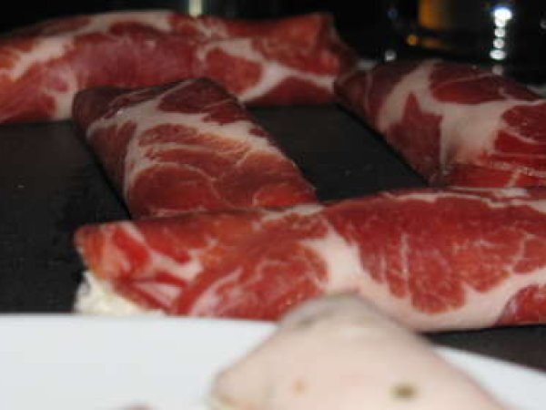 - pour plus de facilité, je vous conseille de disposer les tranches de coppa sur du film étirable. Vous les roulerez plus facilement...