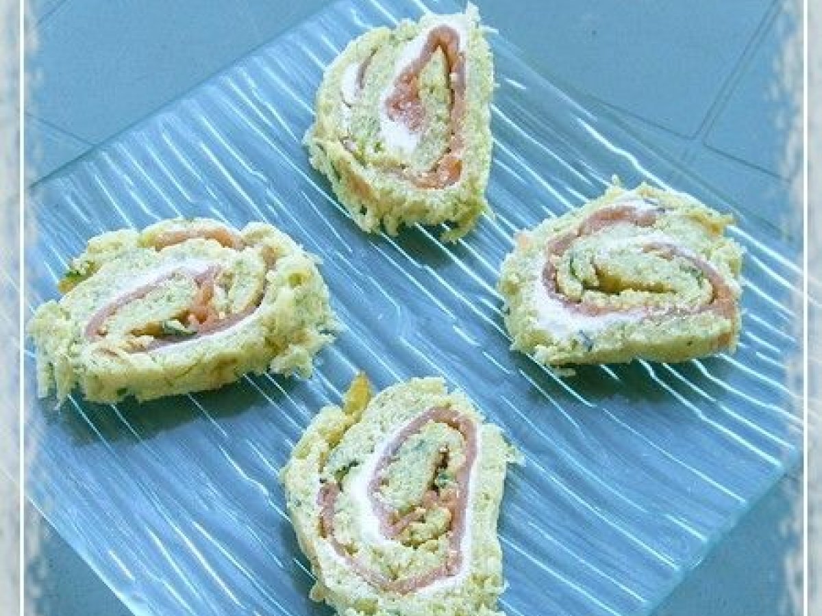 Roulé de blinis de courgettes au saumon fumé