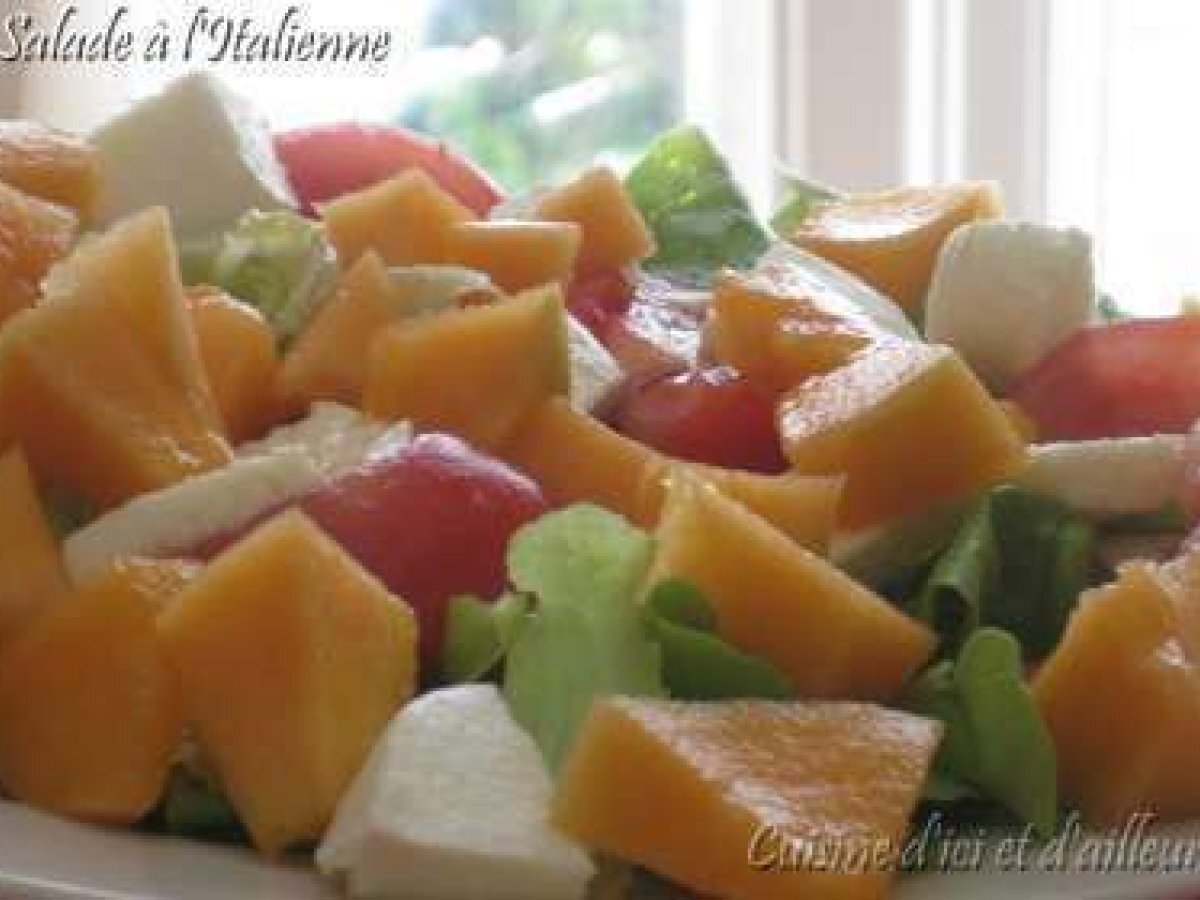 Salade à l'italienne Entréefacile5 min Envoyer cette recette à un ami Imprimer cette page Poser une question à l'auteur Publier votre photo de cette recette Ingrédients 1 Ingrédients pour une assiette 2 /3 feuilles de laitue 1 belle tranche de melon 1 tomate 20 gr de mozarella 1 CS Vinaigre Balsamique