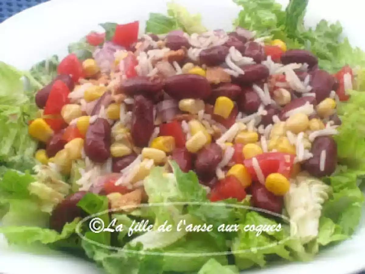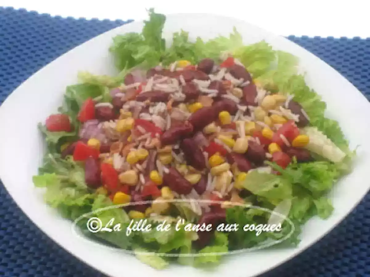 Salade cajun votez maintenant PrécédentSuivant Entréefacile15 min430 Kcal Envoyer cette recette à un ami Imprimer cette page Poser une question à l'auteur Publier votre photo de cette recette Ingrédients 4 1 laitue frisée 4 tranches de bacon cuit et émietté 1 petite boite de maïs en grains 1 boite de haricots rouges ¼ tasse oignon rouge haché 1 tomate préalablement coupée en 2, épépinée et hachée Environ ½ tasse de riz blanc cuit Vinaigrette 4 cuillères à soupe d'huile d'olive 2 cuillères à soupe de vinaigre balsamique 1 cuillère à soupe de miel ½ cuillère à thé d'épices cajun du commerce Poivre du moulin