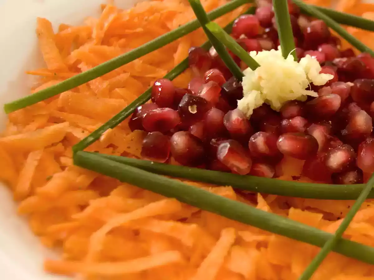 Salade carottes et arilles de grenades Entréemoyen15 min255 Kcal Envoyer cette recette à un ami Imprimer cette page Poser une question à l'auteur Publier votre photo de cette recette Ingrédients 2 les arilles d'une demi-grenade 4 carottes râpées. 4 tiges d'oignons verts 2 cm de gingembre râpé 1 c à c de poudre de moutarde 2 c à s d'huile d'olive le jus d'un demi-citron sel et poivre