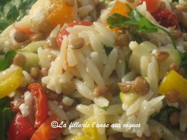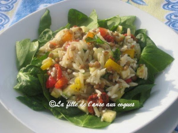 Salade colorée d?orzo et de lentilles votez maintenant PrécédentSuivant Entréefacile23 min Envoyer cette recette à un ami Imprimer cette page Poser une question à l'auteur Publier votre photo de cette recette Ingrédients 4 1 tasse d'orzo 1 courgette coupée en cubes Poivrons de couleur pour la valeur d'½ poivron coupé en cubes ¼ tasse de persil plat haché 1 tasse de lentilles cuites 3 cuillères à table d'huile d'olive 1 cuillère à table de jus de citron 2 cuillères à thé de purée de coriandre ½ tasse de tomates cerises confites Sel et poivre au goût 6 tasses de bébés épinards frais déchiquetés ½ tasse de fromage feta émietté