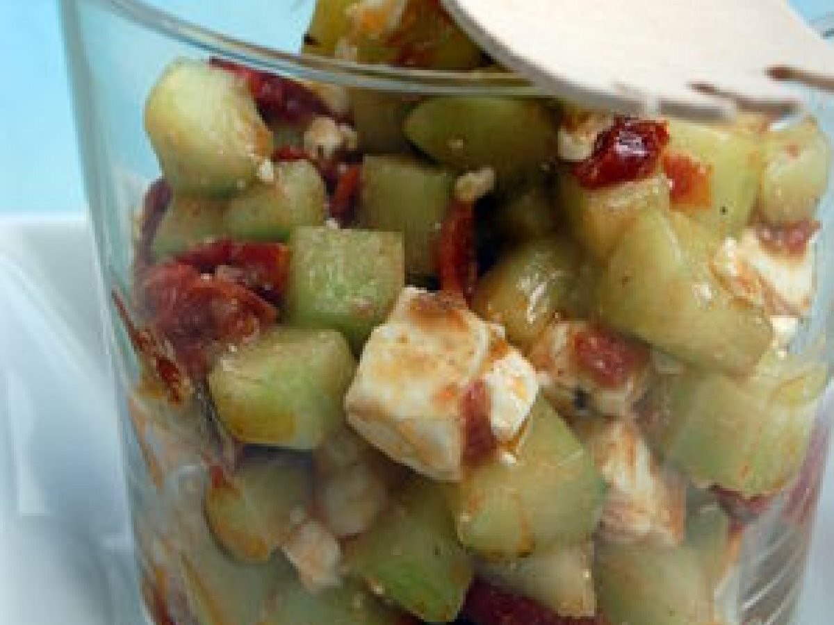 Salade concombre, feta, tomates séchées & sa vinaigrette tomate et basilic