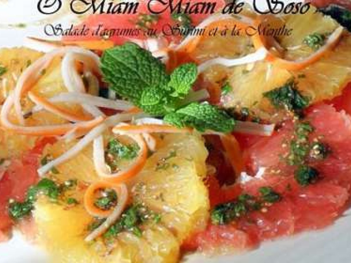 Salade d'agrumes au surimi et a la menthe Entréefacile15 min328 Kcal Envoyer cette recette à un ami Imprimer cette page Poser une question à l'auteur Publier votre photo de cette recette Ingrédients 2 200 gr de surimi, 2 pamplemousses, 2 oranges, 2 càs d'arôme MAGGI, 1 càc de moutarde à l'ancienne, 2 càs de vinaigre de vin, 3 càs d'huile de pépin de raisin, une branche de menthe fraiche, poivre
