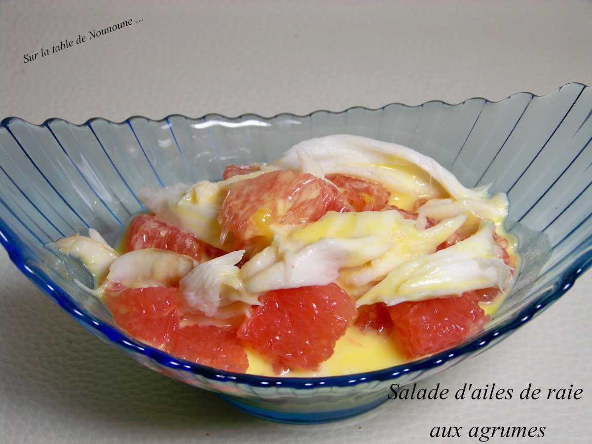 Salade d'ailes de raies aux agrumes votez maintenant Entréemoyen40 min3370 Kcal Envoyer cette recette à un ami Imprimer cette page Poser une question à l'auteur Publier votre photo de cette recette Ingrédients 2 2 ailes de raies congelées 2 pamplemousses 1 orange 2 CAS de jus de citron 1 CAS de sucre 10 cls de crème liquide entière