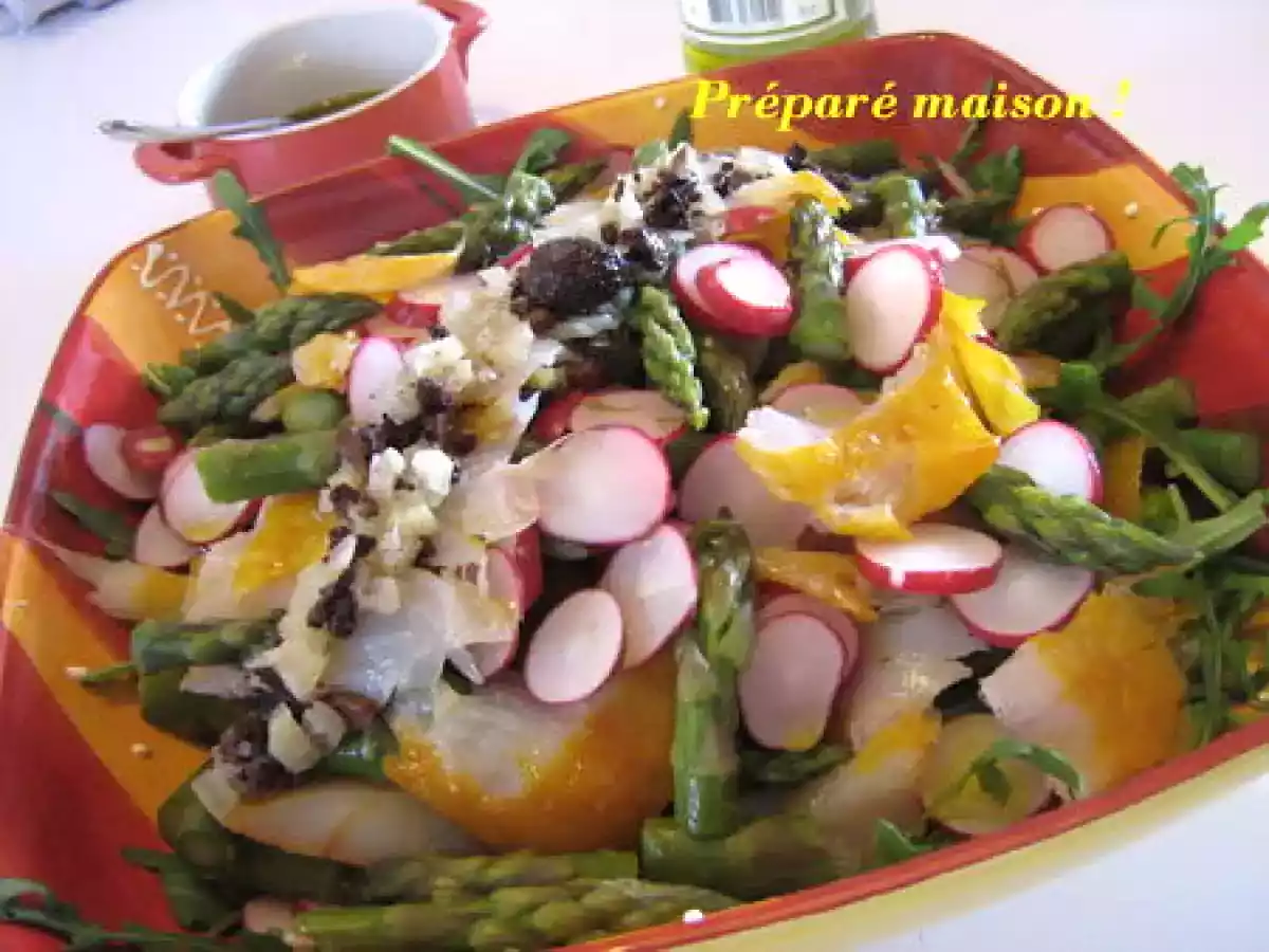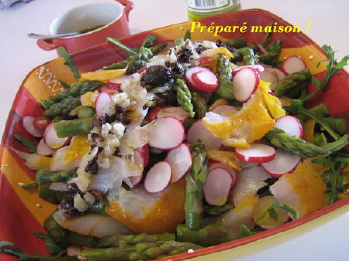 Salade d'asperges au haddock votez maintenant Entréefacile20 min Envoyer cette recette à un ami Imprimer cette page Poser une question à l'auteur Publier votre photo de cette recette Ingrédients 4 400 g de haddock 1 kg d'asperges vertes 1 botte de radis 1/4 de citron confit quelques olives noires jus de citron huile d'olive roquette