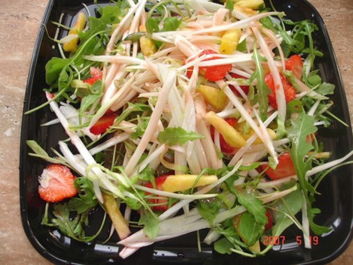 Salade d'endives et de roquette aux ananas et fraises à la vinaigrette au miel
