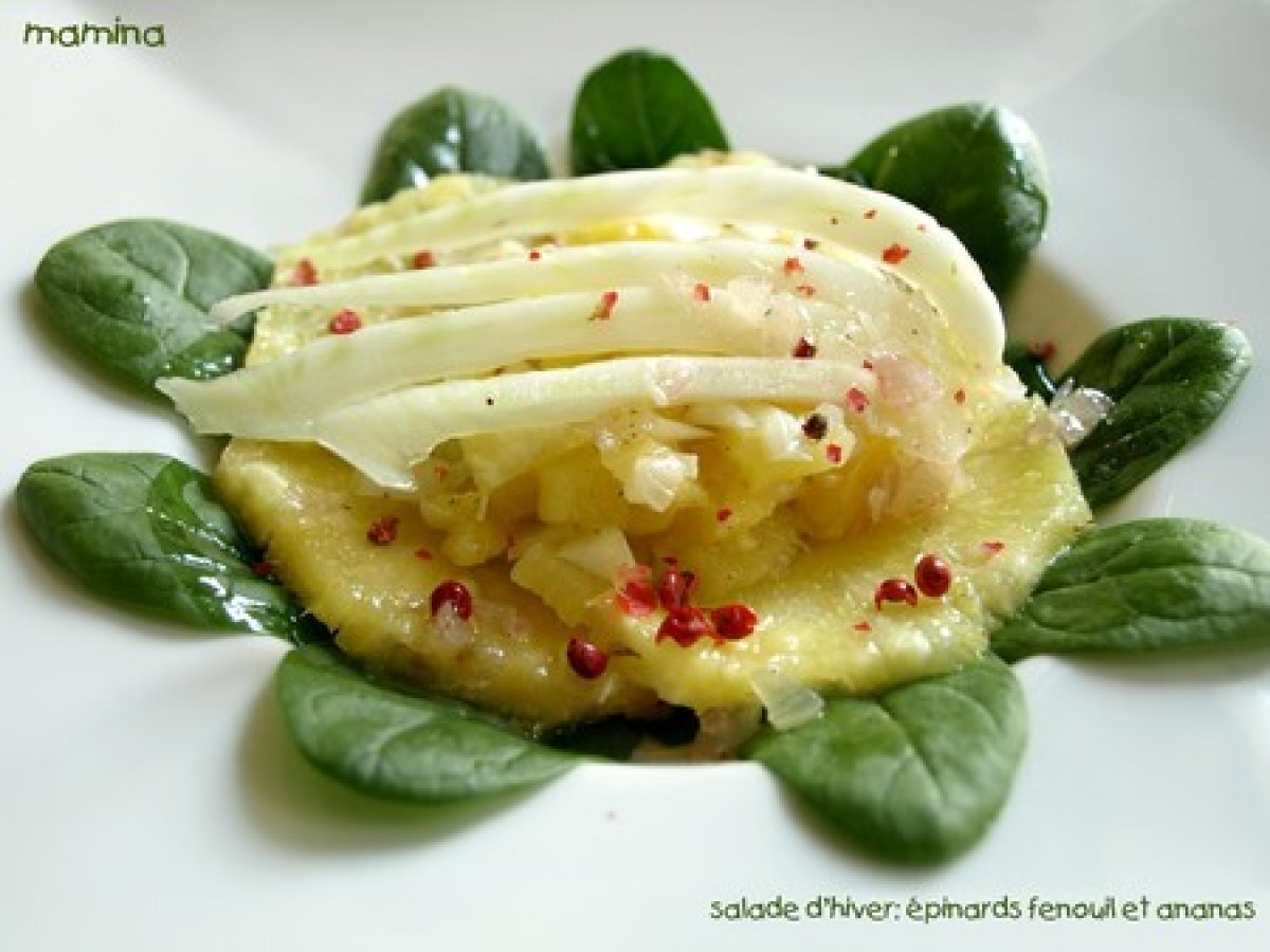 Salade d'hiver croquante: ananas, fenouil et épinards