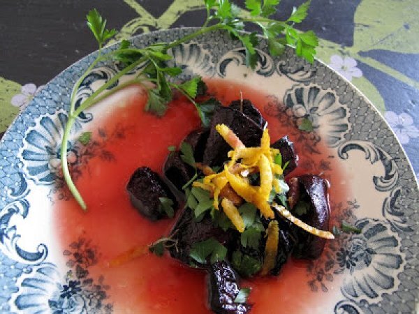 Salade de betteraves rôties à l'orange PrécédentSuivant Entréefacile36 min127 Kcal Envoyer cette recette à un ami Imprimer cette page Poser une question à l'auteur Publier votre photo de cette recette Ingrédients 4 3 betteraves crues huile d'olive vinaigre balsamique une orange romarin persil