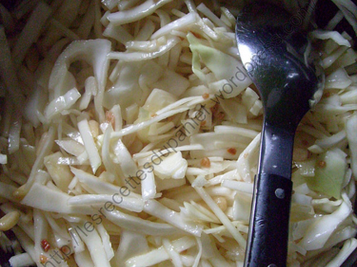 Salade de chou blanc / white cabbage salad Entréefacile10 min256 Kcal Envoyer cette recette à un ami Imprimer cette page Poser une question à l'auteur Publier votre photo de cette recette Ingrédients 4 1/4 de chou blanc 1 cuillère à soupe de miel 4 cuillères à soupe de vinaigre de vin 2 cuillères à soupe d’huile de noisette 4 cuillères à soupe de pignons de pin 2 cuillères à soupe de croquant de noisette Coût estimé: 5.13Euros€ (1.28€/part)