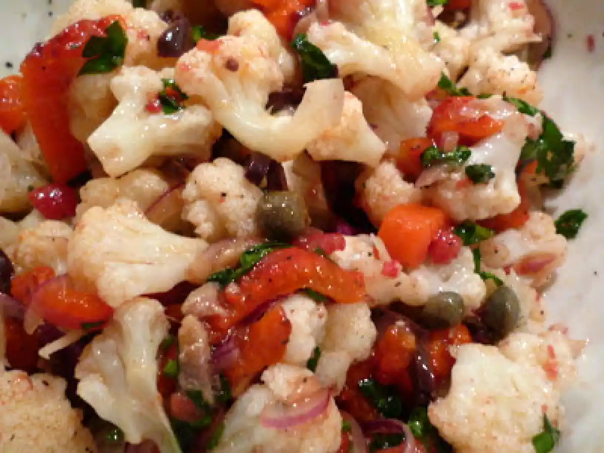 Salade de chou-fleur à la napolitaine Entréefacile17 min Envoyer cette recette à un ami Imprimer cette page Poser une question à l'auteur Publier votre photo de cette recette Ingrédients 2 chou oignons rouges câpres persil anchois un peu de tomates olives Un filet d'huile d'olive un peu de jus de citron vinaigre de vin sel poivre basta poivrons rouges grillés