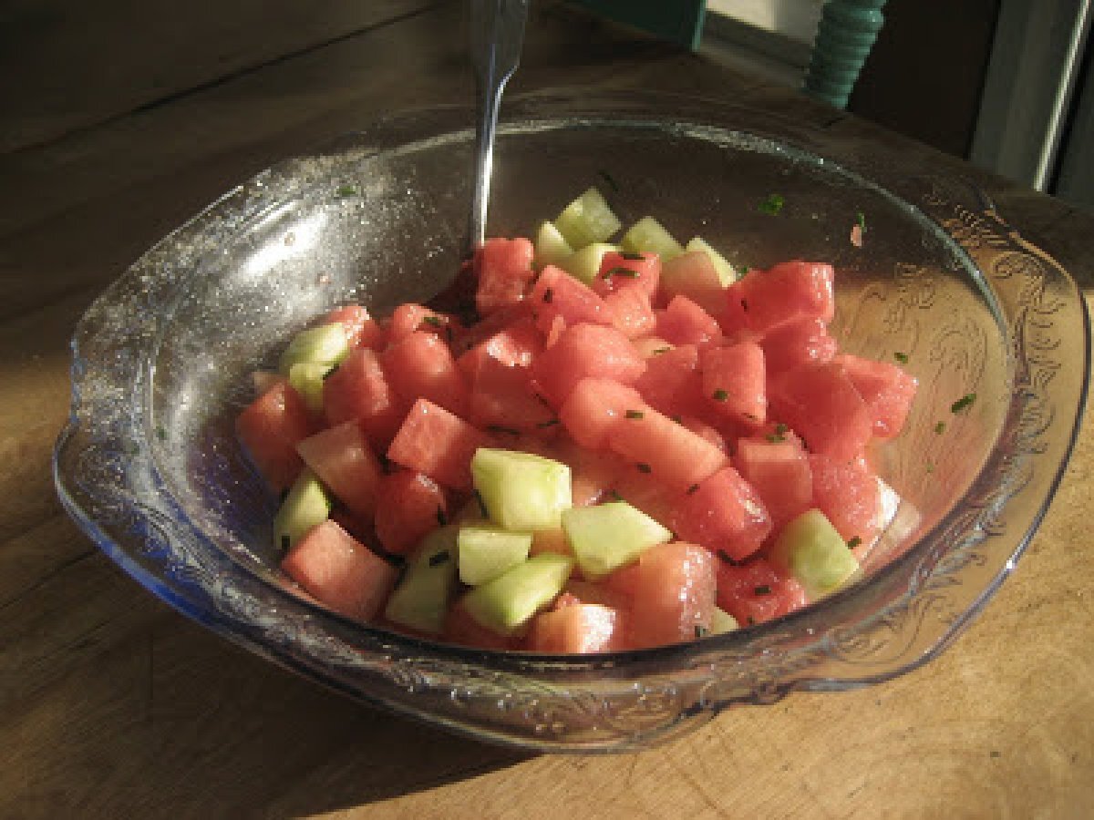 Salade de concombre et de melon d'eau PrécédentSuivant Entréefacile5 min47 Kcal Envoyer cette recette à un ami Imprimer cette page Poser une question à l'auteur Publier votre photo de cette recette Ingrédients 2 1 cuillère à table d'huile d'olive ou de noix 1 cuillère à table de vinaigre de cidre de pomme 1 cuillère à table de miel 1 cuillère à table de ciboulette fraîche 3 tasses de melon d'eau en dés 1 tasse de concombre en dés Sel poivre Coût estimé: 1.23Euros€ (0.62€/part)