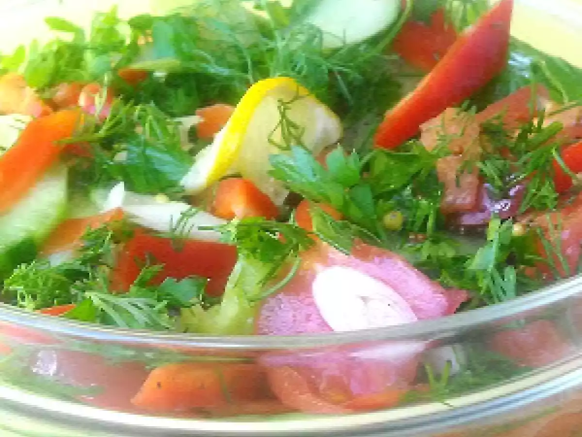 Salade de concombre, tomates et poivrons PrécédentSuivant Entréefacile5 min Envoyer cette recette à un ami Imprimer cette page Poser une question à l'auteur Publier votre photo de cette recette Ingrédients 2 2 tomates bien rouges 1 concombre échalote verte 2 poivrons (rouge et jaune) herbes: persil, aneth vinaigrette sel